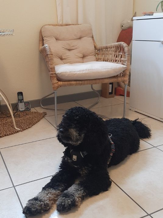 Mein einjähriger Hund Timi, nicht haarend und Allergiker freundlich, ist noch am üben, um mich in Zukunft, falls von den Klienten gewünscht bei meiner Arbeit zu begleiten. Vorerst soll er sich noch ganz Junghunde gerecht austoben, frei, wild und wunderbar sein.